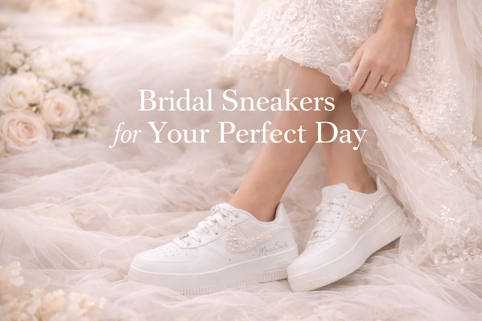 Air Force 1 Wedding Sneakers with Pearls & Pink Roses – Custom Bridal Shoes